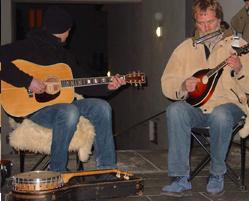 ...unter diesem Motto stand die erste »Fête de la musique« in der Hohenzollernstraße, veranstaltet von den_urbanauten im Rahmen des Projektes »OP 13«. Trotz inzwischen winterlicher Temperaturen wagten sich acht Musiker und Musikgruppen auf die Straße, spielten und sangen und machten aus der Verkehrsstraße einen Ort. Für einen Abend schufen sie einen Rahmen für Kommunikation, Unterhaltung und außergewöhnliche Begegnungen mit Flaneuren und den Leuten von nebenan, einen Ort zum Verweilen im Fluß. So tönte Irish Folk aus der Hofeinfahrt, während die »Rattenfänger von Honzi« mit ihren Flöten vorbeizogen und die Stepptänzerinnen von »Tabs for Time« gegenüber der lachenden Menschentraube beim Kindertheater »Struwwelpeter« ihr Können zeigten. Trommler ließen an der nächsten Ecke ihr Publikum mitwippen, während vor der Buchhandlung lateinamerikanische Rhythmen erklangen. Und mit dem Klang italienischer Arien zogen Erinnerungen an den vergangenen Sommerurlaub vorbei… Als Stars des Abends entpuppten sich Herr Schmidt und seine Gitarre: Mit einem Repertoire von Fredl Fesl bis Johnny Cash wurde der Eingangsbereich eines Schuhgeschäfts zur Bühne, und unter dem großen Beifall des Publikums fanden die Zugaben erst kurz vor zehn ein Ende. |